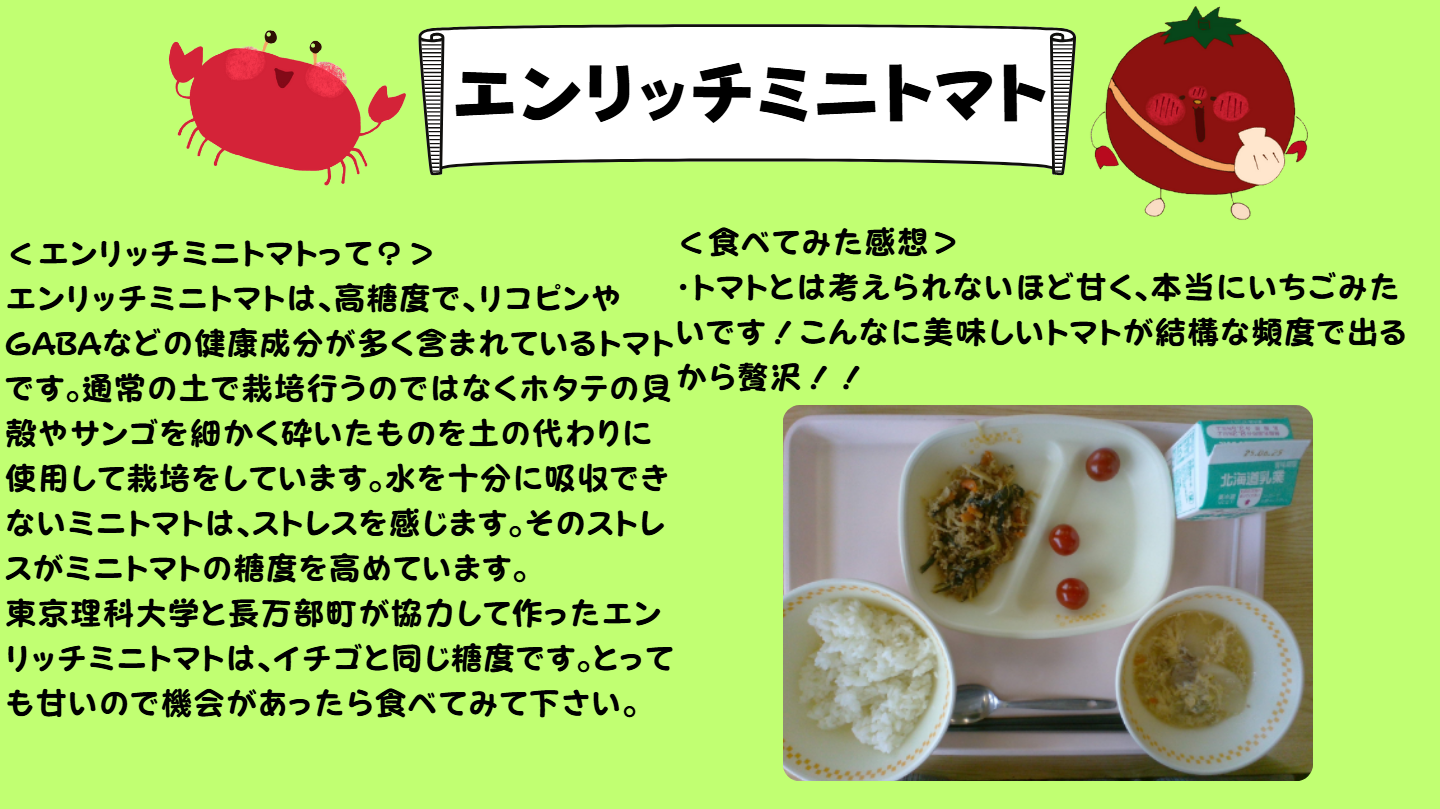 | 給食名 | エンリッチミニトマト |