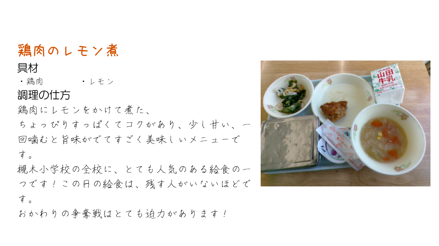 | 給食名 | 鶏肉のレモン煮 |
