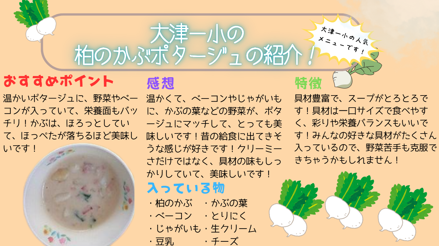 | 給食名 | 柏のかぶポタージュ |