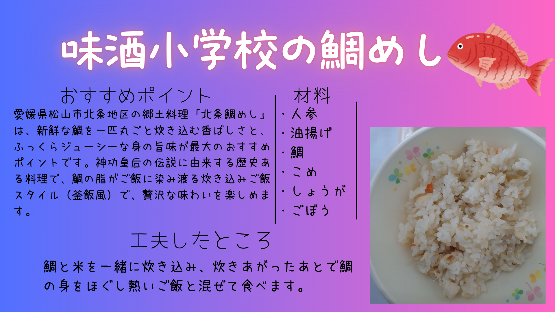 | 給食名 | 鯛めし |